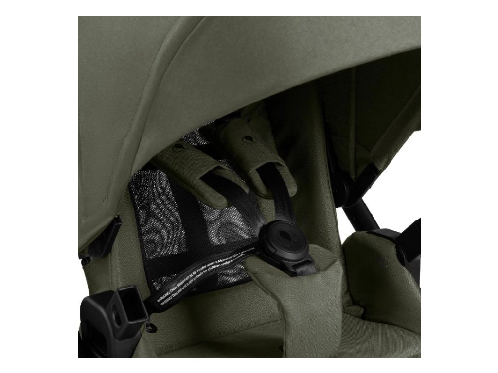Dodávaná sportovní sedačka kočárku se připevní k podvozku jediným kliknutím. Pohodlně polstrované sedadlo má měkkou a prodyšnou komfortní vložku, která poskytuje další podporu a komfort. Do opěradla sedadla je integrováno větrací okénko z jemné síťoviny. Díky cirkulaci vzduchu je tak neustále zajištěno příjemné klima. Síťované větrací okénko lze také nalézt ve velkorysé a prodloužitelné stříšce s UV ochranou 50+ . Součástí stříšky je také sluneční clona, kterou lze vyklopit dopředu, když je slunce nízko, a tím stříšku prodloužit. Extra stín a speciální ochrana pro vaše dítě ve slunečných dnech.