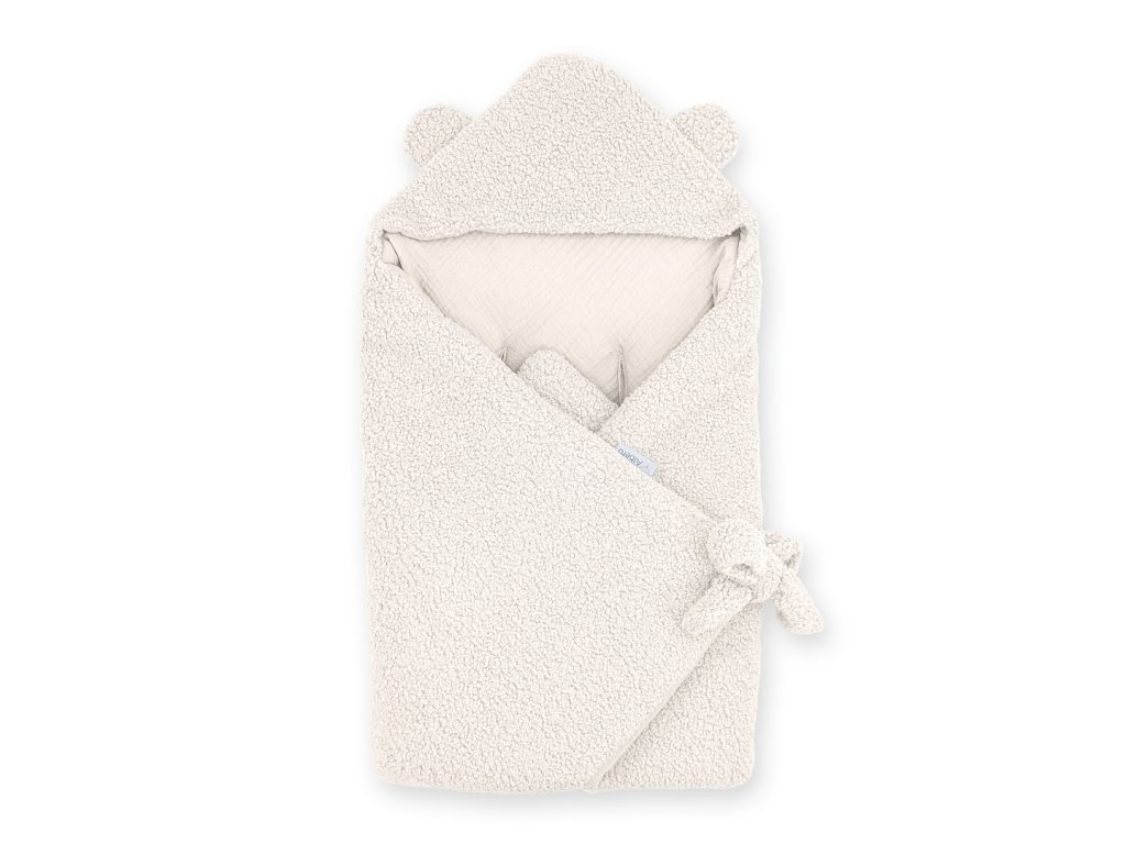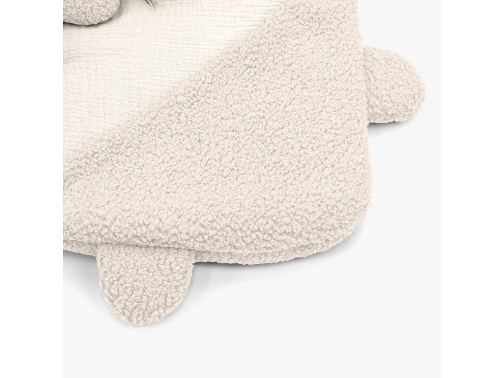 Složení: Látka 1: Buklé (ovčí) – 100% polyester, Látka 2: Dvojitý mušelín – 100% bavlna.