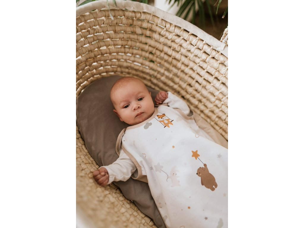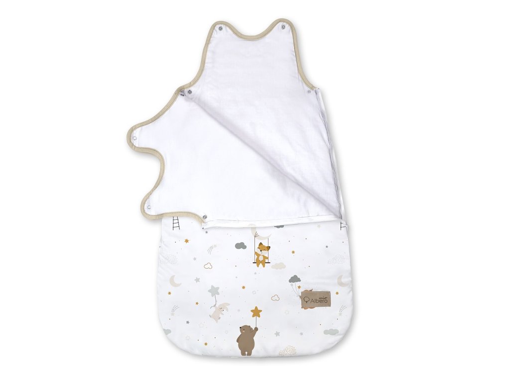 Lehký a bezpečný spací pytel ze 100% bavlny s antialergenní výplní udrží vaše miminko v teple po celou noc. Díky obousměrnému zipu usnadňuje přebalování a přináší klidný spánek bez odkopávání.