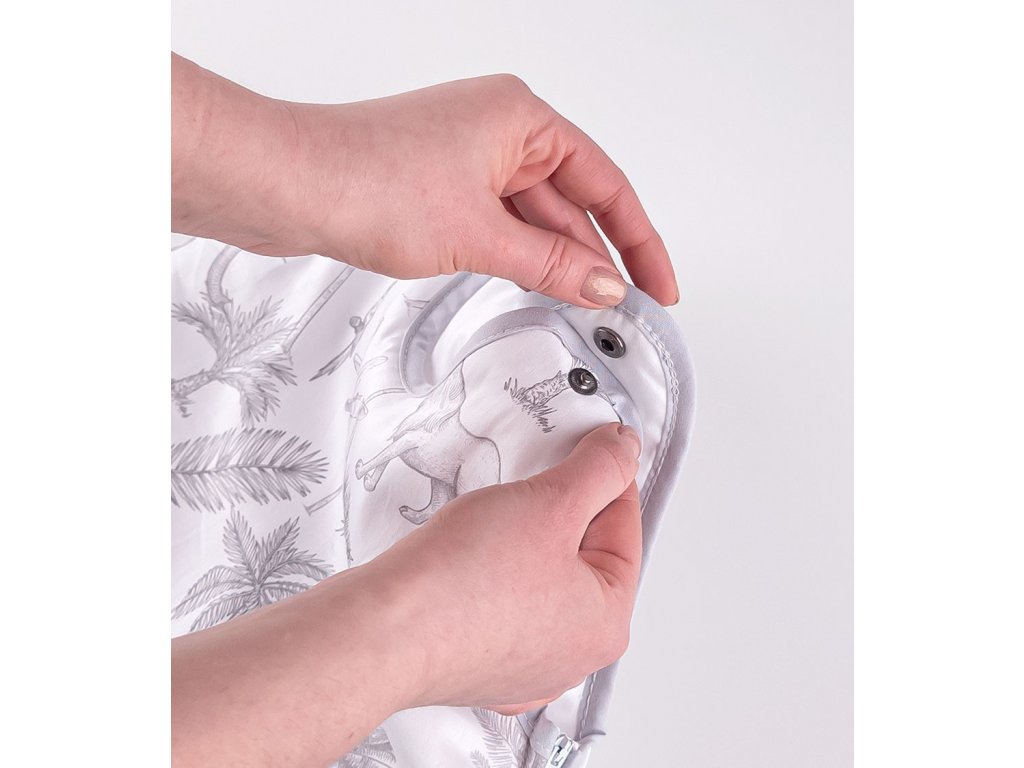 Pytel neomezuje pohyb dítěte během spánku. Dvoucestný zip usnadňuje přebalování bez nutnosti dítě budit, a patentky na ramínkách zajišťují rychlé oblékání i svlékání.