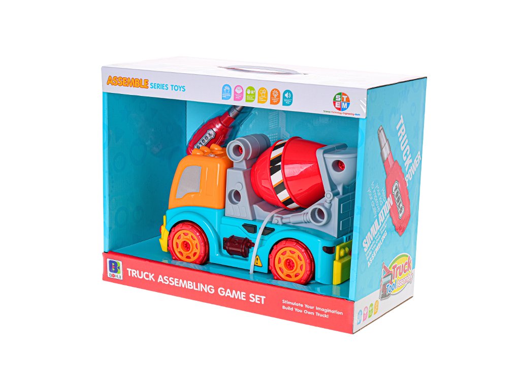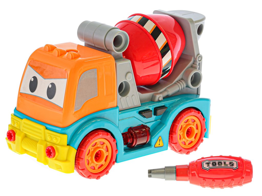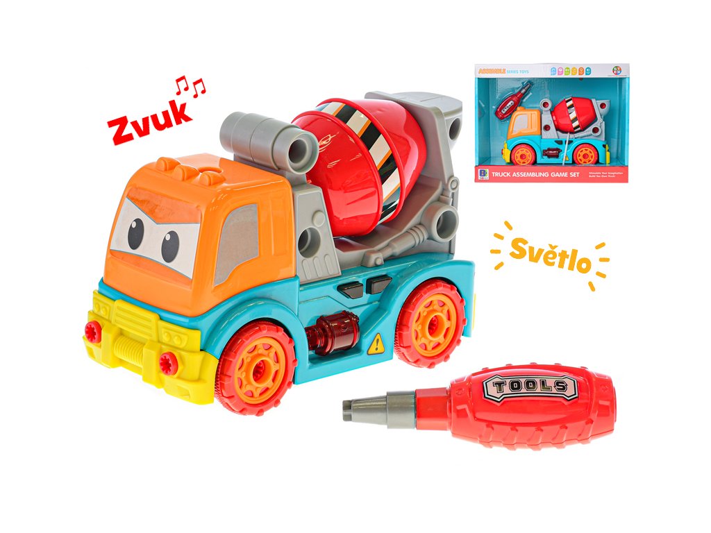 Šroubovací auto domíchávač pro volný chod se světelnými a zvukovými efekty. Autíčko je ve veselých barvách.