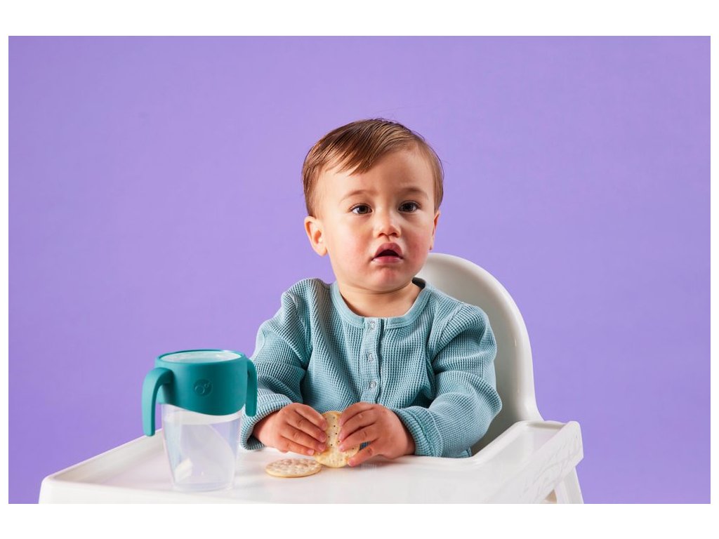 360° netekoucí učící hrneček od značky b.box dovoluje dětem nápoj z hrnečku jen usrkávat, ale hlavně učit se pít díky unikátnímu měkkému silikonovému okraji po celém okraji hrnečku.