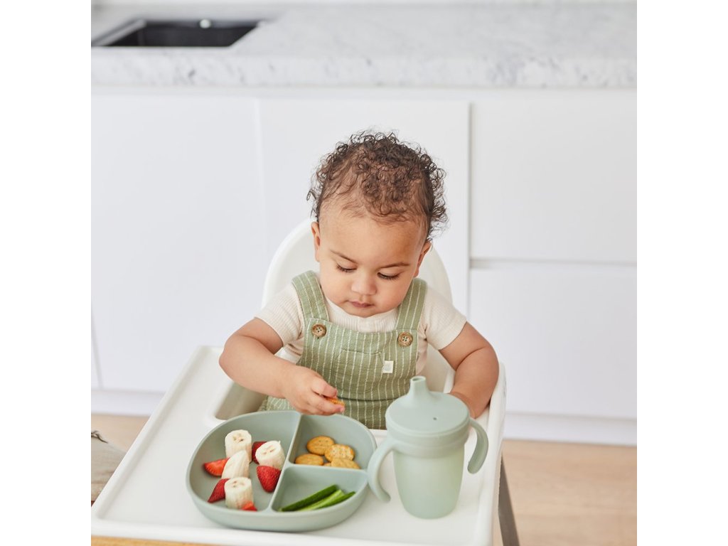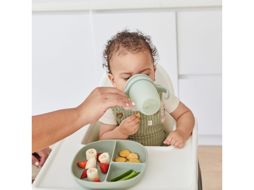 Silikonové víčko s pítkem, které neprotéká, pomáhá předcházet nechtěnému rozlití. Průhledný kelímek umožní rodičům sledovat hladinu tekutiny a pitný režim dítěte. Odnímatelné víčko a rukojeti se přizpůsobí věku a potřebám dítěte.