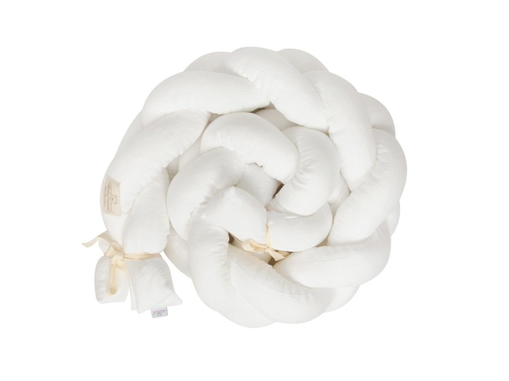 Heboučký a praktický pletený cop od značky Babymatex je moderní alternativou tradičního nebo polštářového mantinelu nejen do dětské postýlky. Všechny tři prameny jsou vyrobeny z velmi kvalitního bavlněného mušelínového materiálu, výplněné silikonovými mikrokuličkami (dutné vlákno).