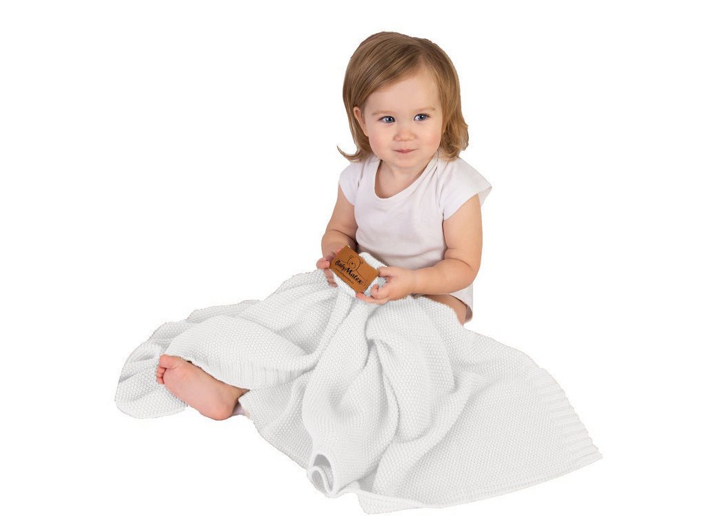 Bavlněná pletená deka v bílé barvě je jemňoučká a velmi příjemná na dotek.