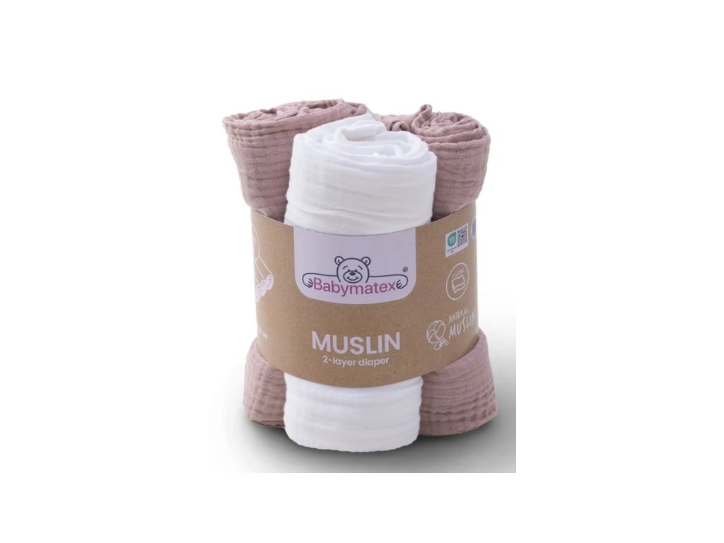 Mušelínové pleny Babymatex jsou vyrobeny z kvalitní, 100% bavlněné, dvojitě mačkané, dvouvrstvé mušelínové látky.Plenka je ideální pro každodenní používání a pomůže udržet vaše dítě v suchu a pohodlí. Vhodná nejen pro novorozence, ale i pro starší děti. Je praktická na cesty, do kočárku, nebo pro přebalování na cestách.