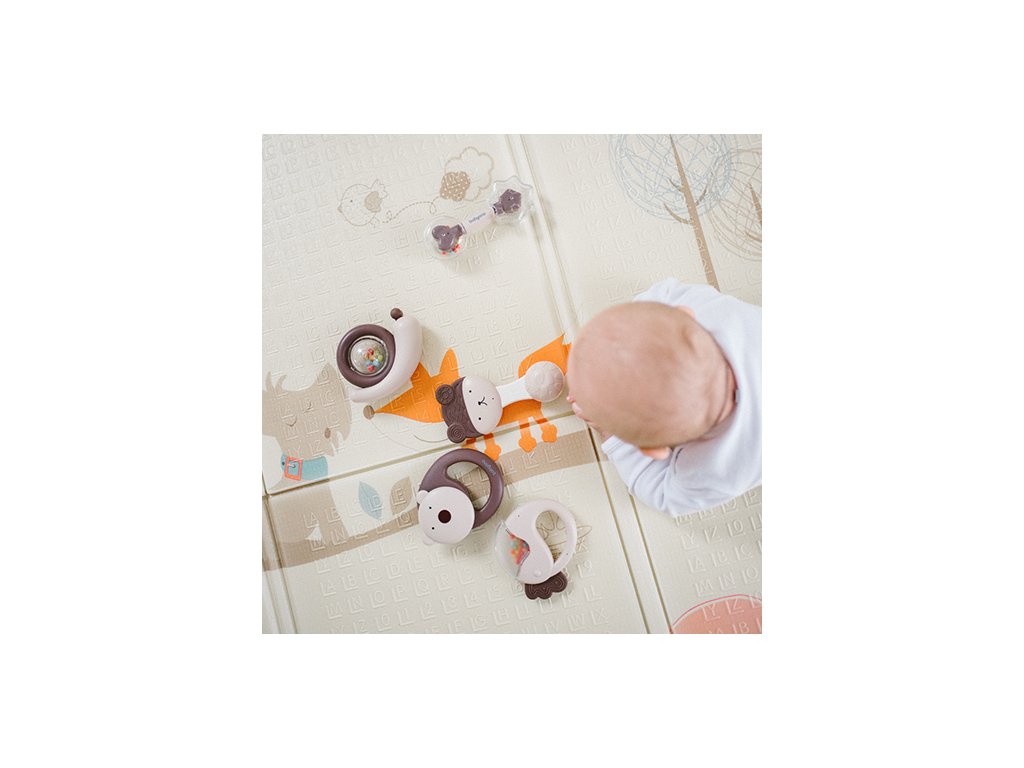 Chrastítko v roztomilém designu je ideální pro rozvoj smyslů děťátka. Je vyrobena z bezpečných materiálů a je k dispozici v ergonomickém tvaru, který dokonale padne do malých ručiček. Zvuky vydávané chrastítkem stimulují sluch, zatímco kontrastní barvy pomáhají dítěti rozvíjet zrak od prvních měsíců života.