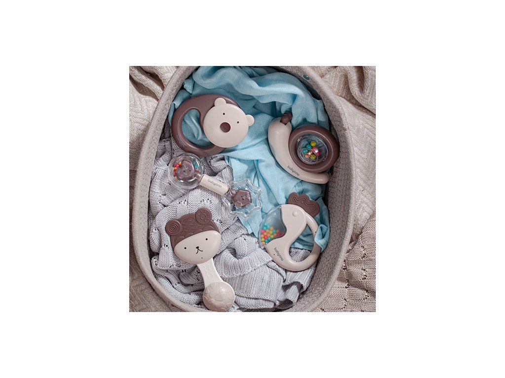 Chrastítko v roztomilém designu je ideální pro rozvoj smyslů děťátka. Je vyrobena z bezpečných materiálů a je k dispozici v ergonomickém tvaru, který dokonale padne do malých ručiček.