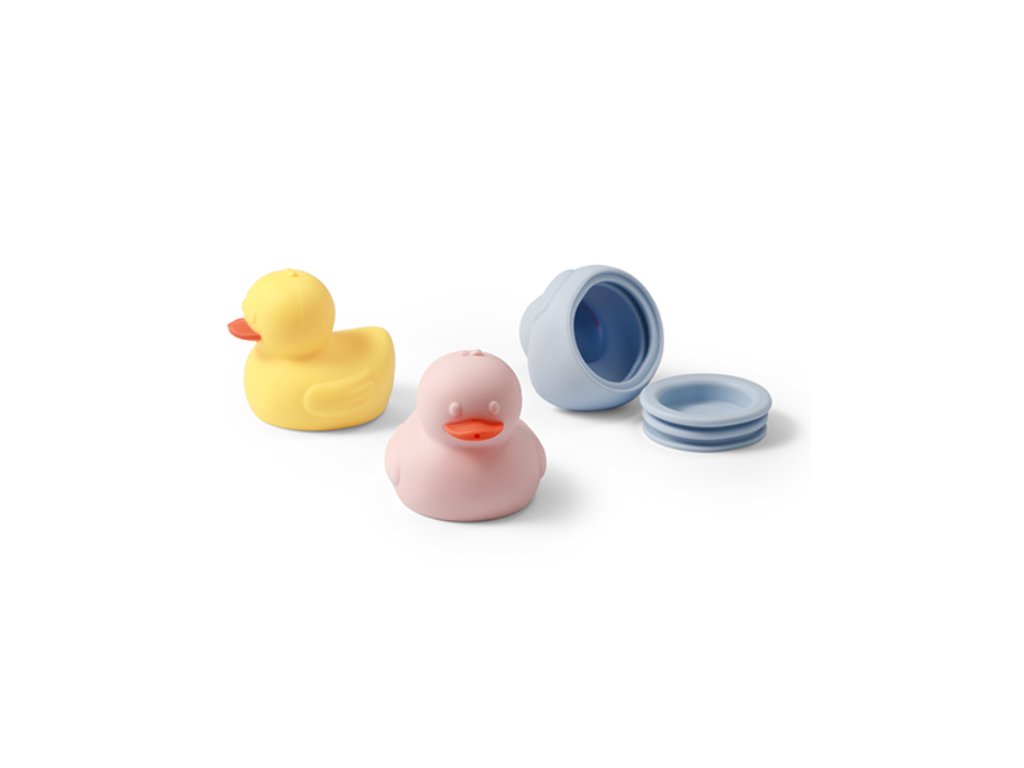 Sada kačenek do koupele – zábavná, hygienická a bezpečná hra pro vaše miminko. Sada obsahuje tři pečlivě vyrobené kačenky v jemných pastelových barvách. Jsou měkké, příjemné na dotek a vyrobeny z bezpečného silikonu bez BPA a ftalátů.