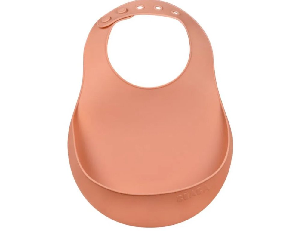 Bryndák pro děti Silicone Bib Beaba Terracotta z měkkého silikonu a knoflíky oranžový od 4 měsíců