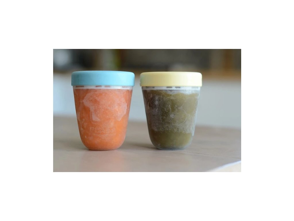 Kelímky na zeleninové i ovocné příkrmy do mrazáku i do lednice. Příkrm v kelímku může být ohříván ve vodní lázni nebo v mikrovlnné troubě. Díky měkkému silikonovému materiálu je snadné z kelímku vyjmout i mražený obsah. Šroubovací víčko je zárukou bezpečného uzavření obsahu kelímku. Ryska v mililitrech slouží ke pro snadnému určení objemu příkrmu. Silikonový měkký materiál je bezpečný a příjemný při používání. Je odolný vysokým i nízkým teplotám a není náchylný k vytváření skvrn od barevných potravin. Vhodné pro použití v mrazáku, mikrovlnné troubě i myčce na nádobí. Kelímky jsou stohovatelné pro úsporu místa při skladování.