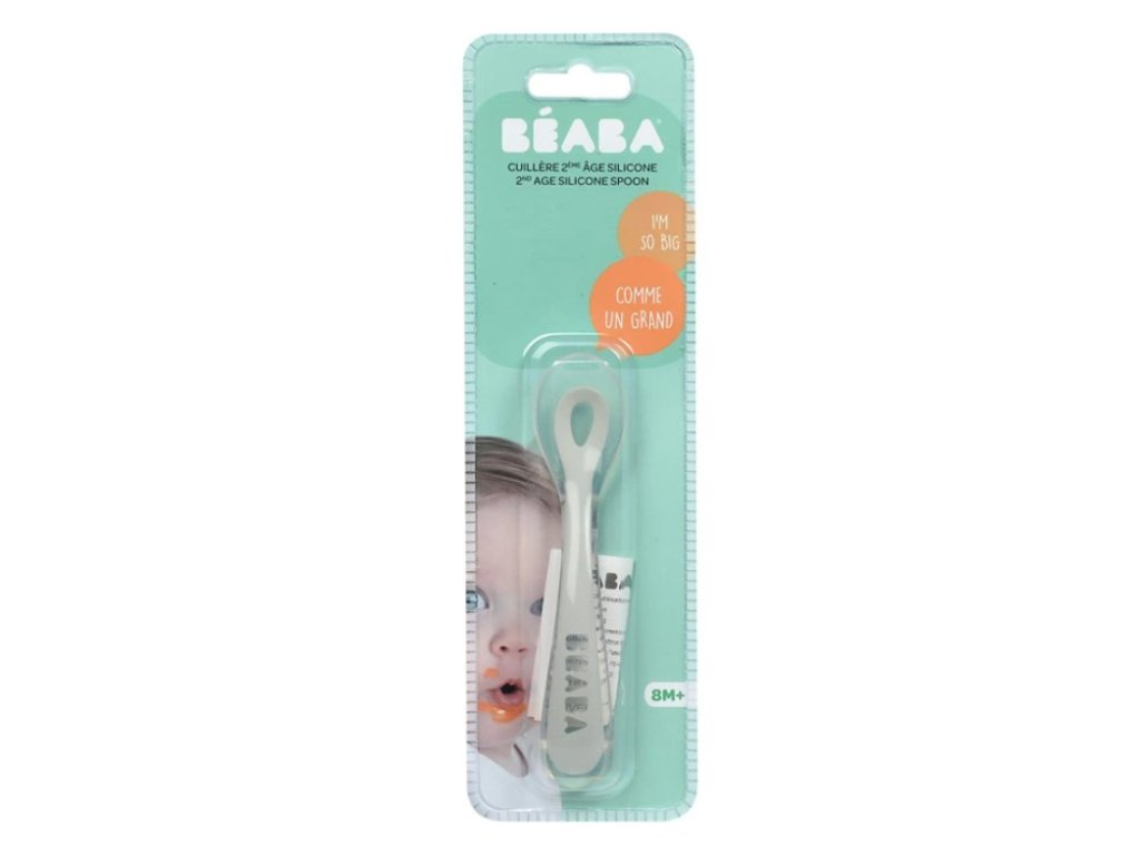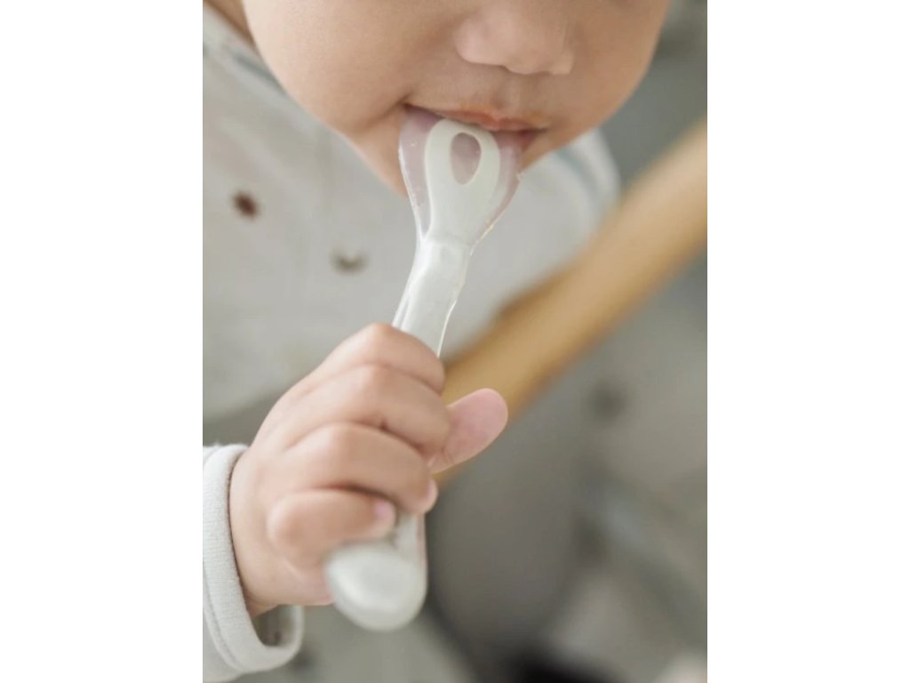 Silikonová lžička pro první samostatné krmení má ideální tvar pro dětská ústa. Tvar držadla usnadňuje dítěti držení lžičky. Lžička má na spodní straně rukojeti opěrku pro možnost hygienického odložení lžičky na stůl. Možno mýt v myčce. Neobsahuje BPA. Vhodné pro děti od 8 měsíců.