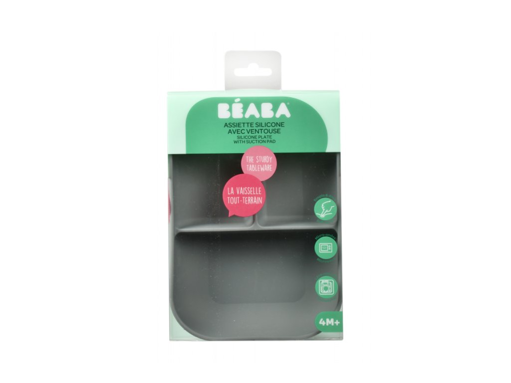 Beaba Talíř silikonový dělený s přísavkou Mineral Grey