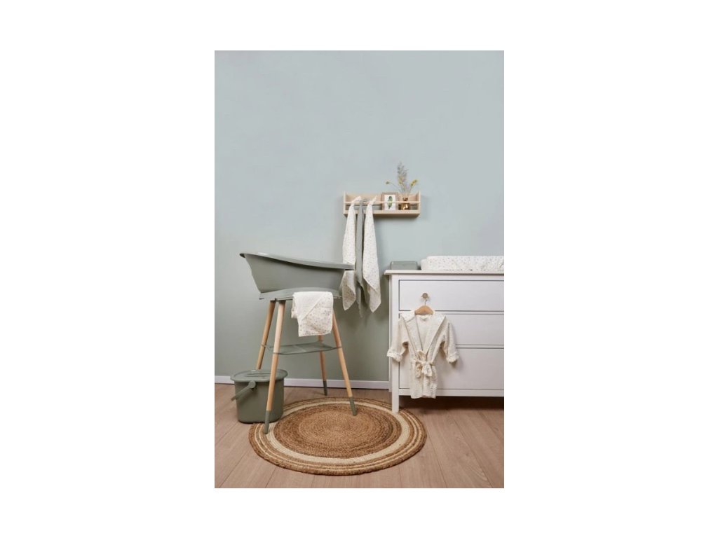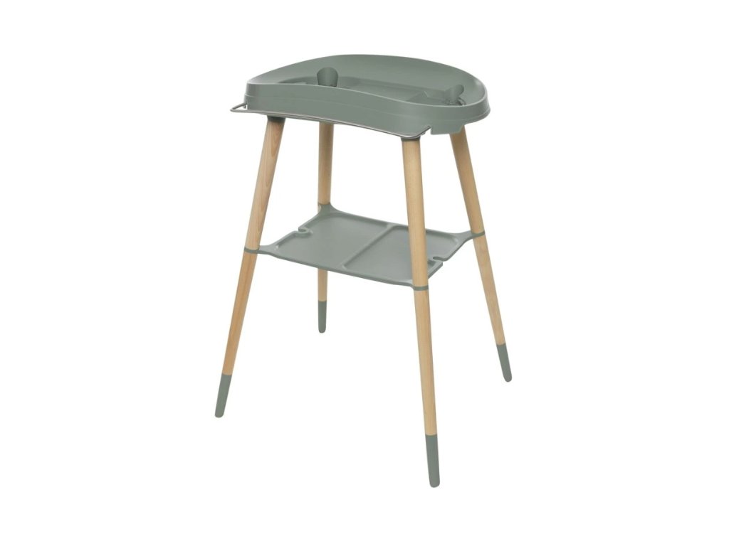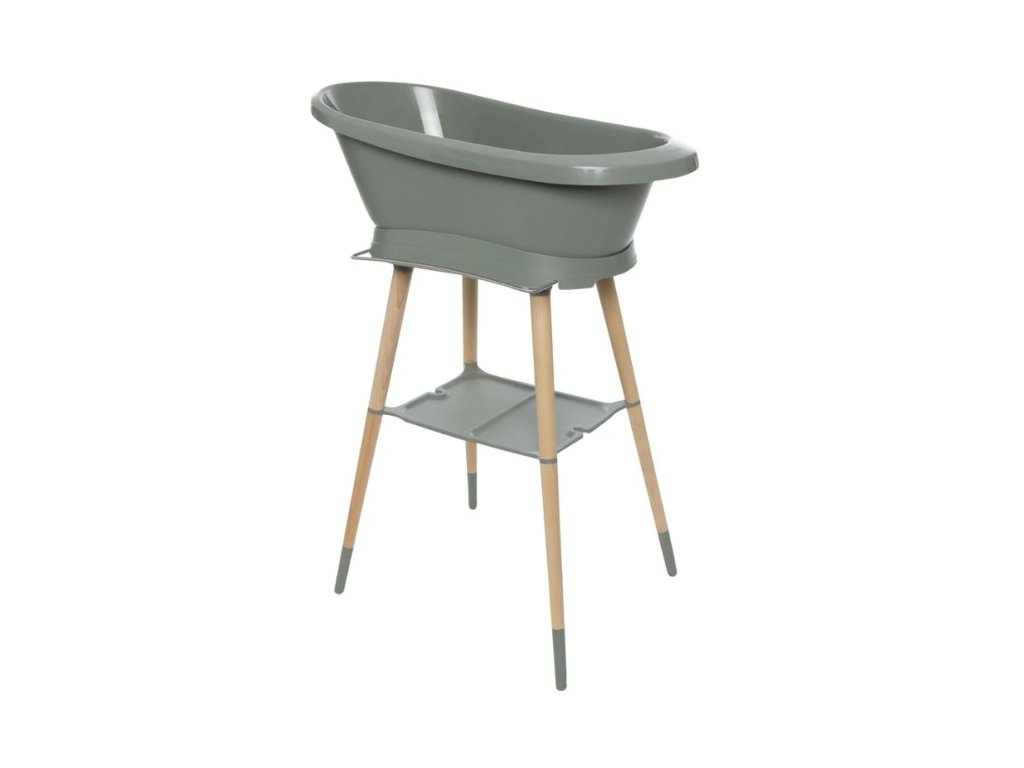 Sada vaničky Bébé-jou Sense v zelenošedé barvě a luxusního stojanu ve stejné barvě se štíhlými nohami z lakovaného buku.