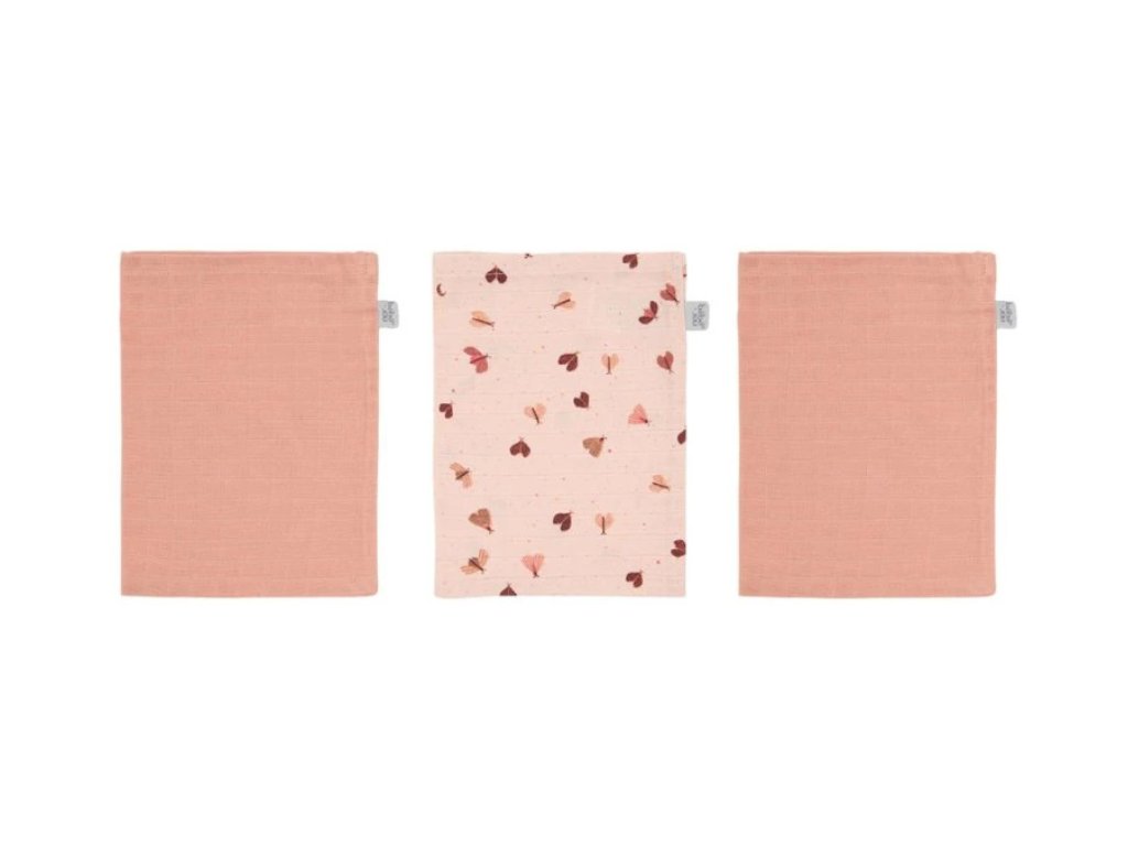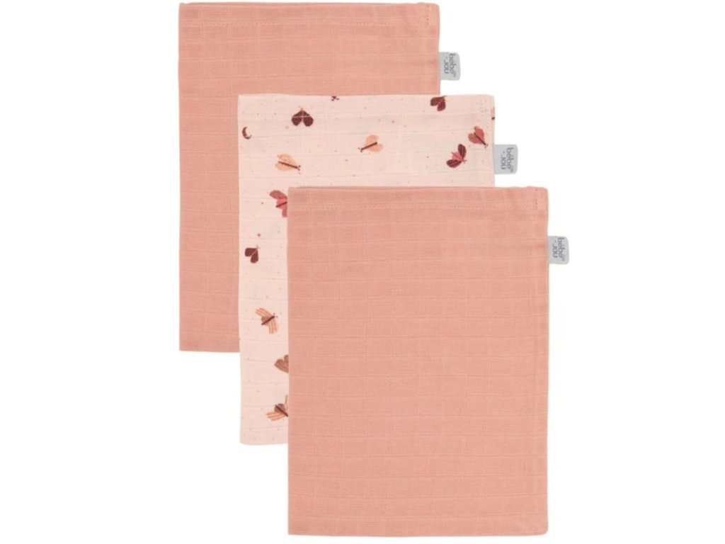 Sada tří kusů dětských mycích žínek z mušelínu s bambusovým vláknem od Bébé-jou.