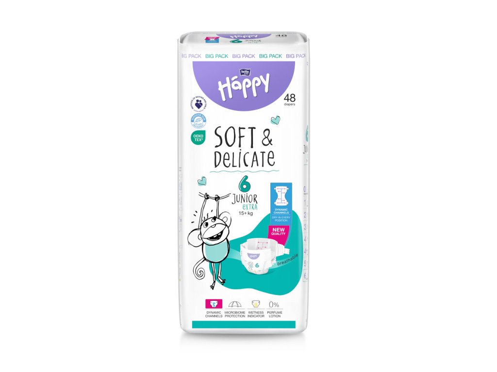 Dětské pleny Happy Soft & Delicate Junior Extra (6) jsou doporučeny pro novorozence s hmotností 11-18 kg. Jsou vyrobeny z nejkvalitnějších materiálů, dokonale se přizpůsobí tělu dítěte a poskytují příjemný pocit sucha. Jsou navrženy tak, aby vyhovovaly potřebám té nejcitlivější pokožky – neobsahují žádné alergeny a minimalizují riziko vzniku opruzenin.