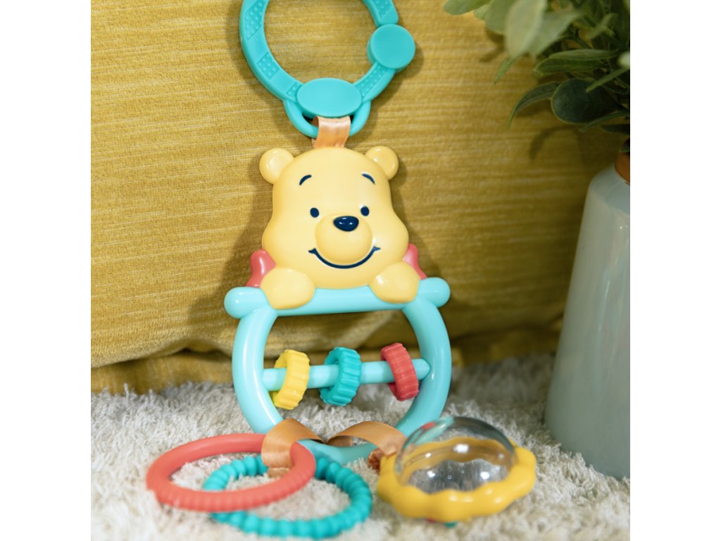 Nechte své malé zvídavé „včelky“ bzučet radostí s touto roztomilou hračkou s motivem medvídka Pú! Tato všestranná a smyslově podnětná hračka poskytuje až 3 způsoby hry, které podporují vývoj jemné motoriky a smyslové vnímání.