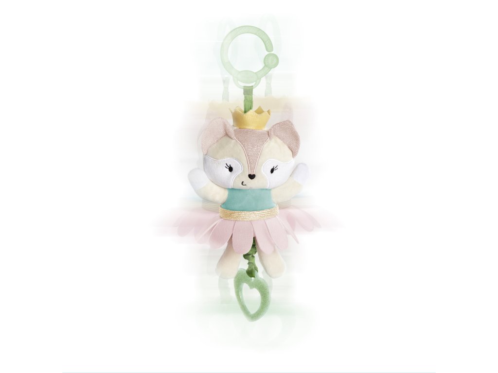Zatancujte si s princeznou Pirouette a nechte se okouzlit její krásnou třpytivou sukýnkou, která bude svým leskem děťátko nabádat k objevování, čímž si bude děťátko rozvíjet svou hmatovou stimulaci. Zatáháním za šňůrku se Piruette roztančí a vykouzlí úsměv na tváři vaší malé princezničky.