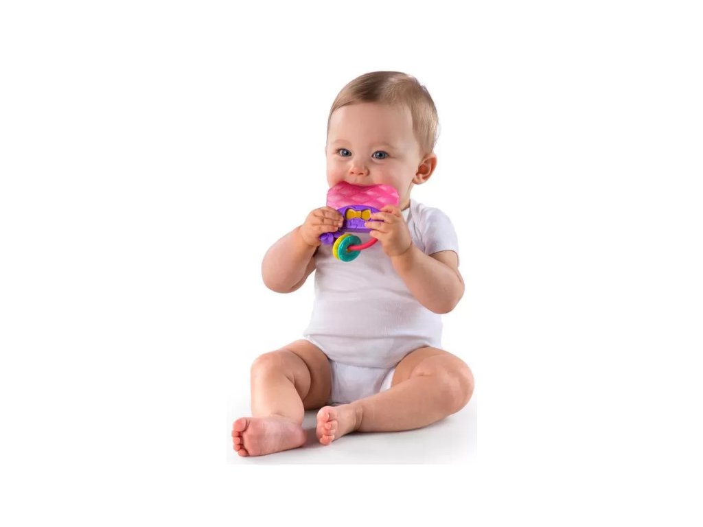 Kousátko ve tvaru kabelky napomáhá děťátku při prořezávání zoubků