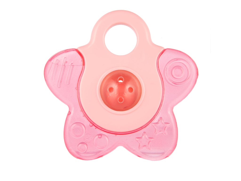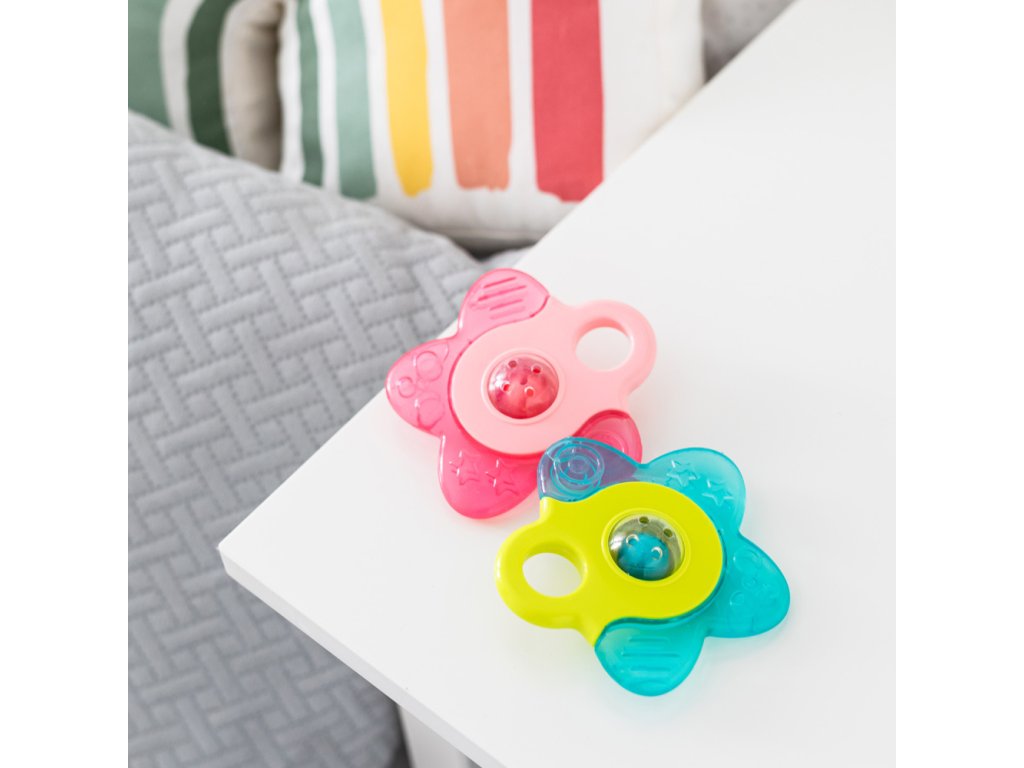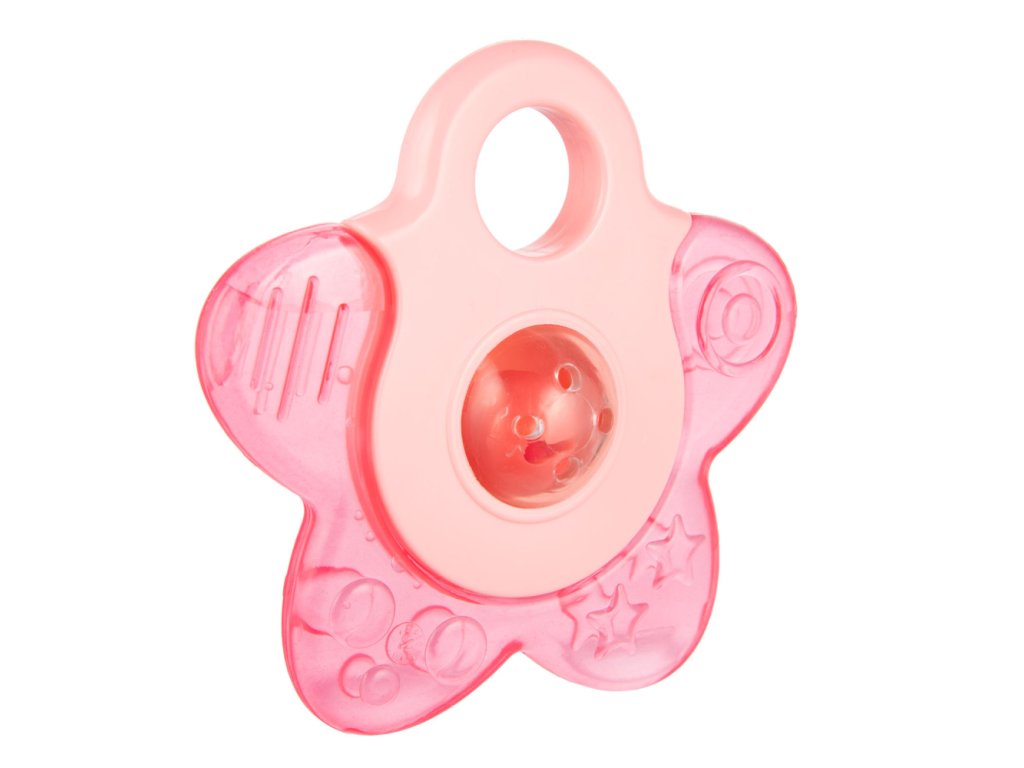 Chladící kousátko s chrastítkem je ideální pro období růstu zoubků a přináší úlevu při svědění dětských dásní. Je vyrobeno z měkkého materiálu s nerovným povrchem, který jemně masíruje oteklé dásně.