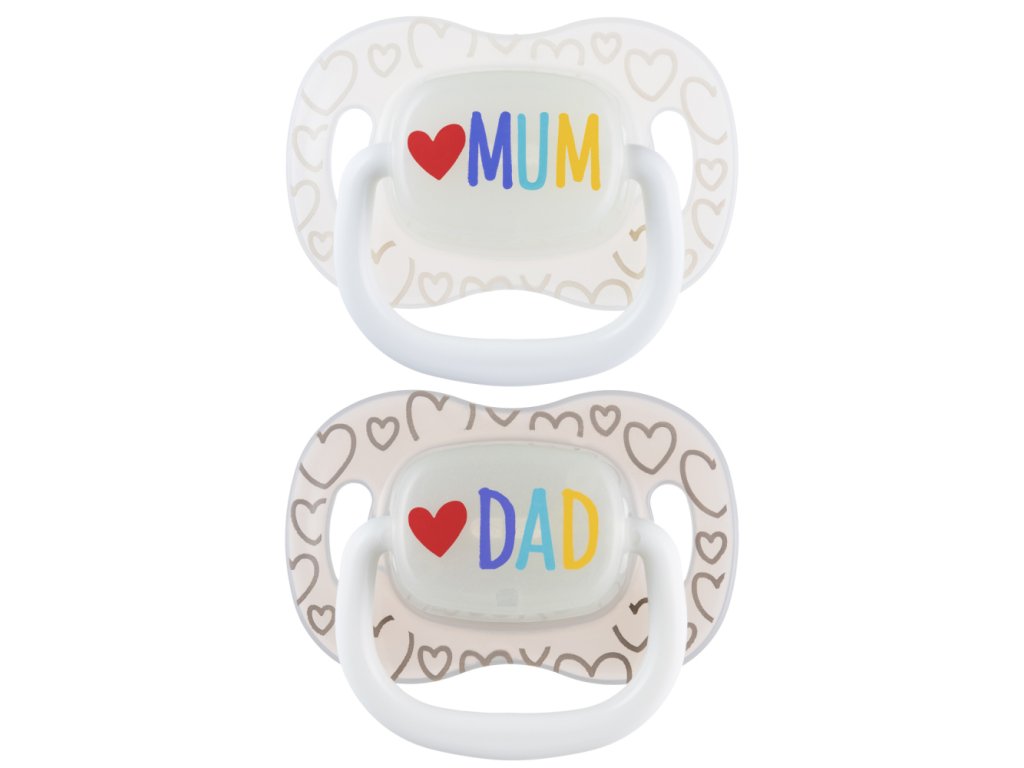 Canpol babies svítící dudlík z kolekce LOVE MUM&DAD přispívá k uvolnění a uklidnění vašeho miminka.