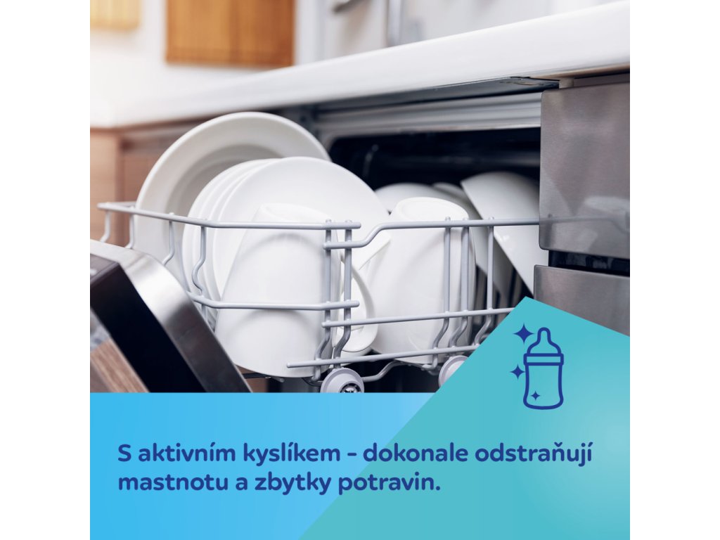 Obsahuje aktivní kyslík – dokonale odstraní zbytky mléka a kaše.