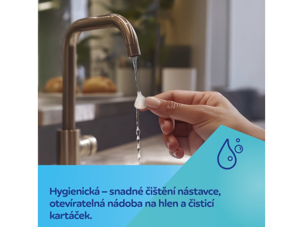 Snadné čištění zajišťuje odnímatelná sběrná nádobka na hlen a čisticí kartáček. Součástí balení je také pinzeta pro bezpečné odstranění zaschlého hlenu.