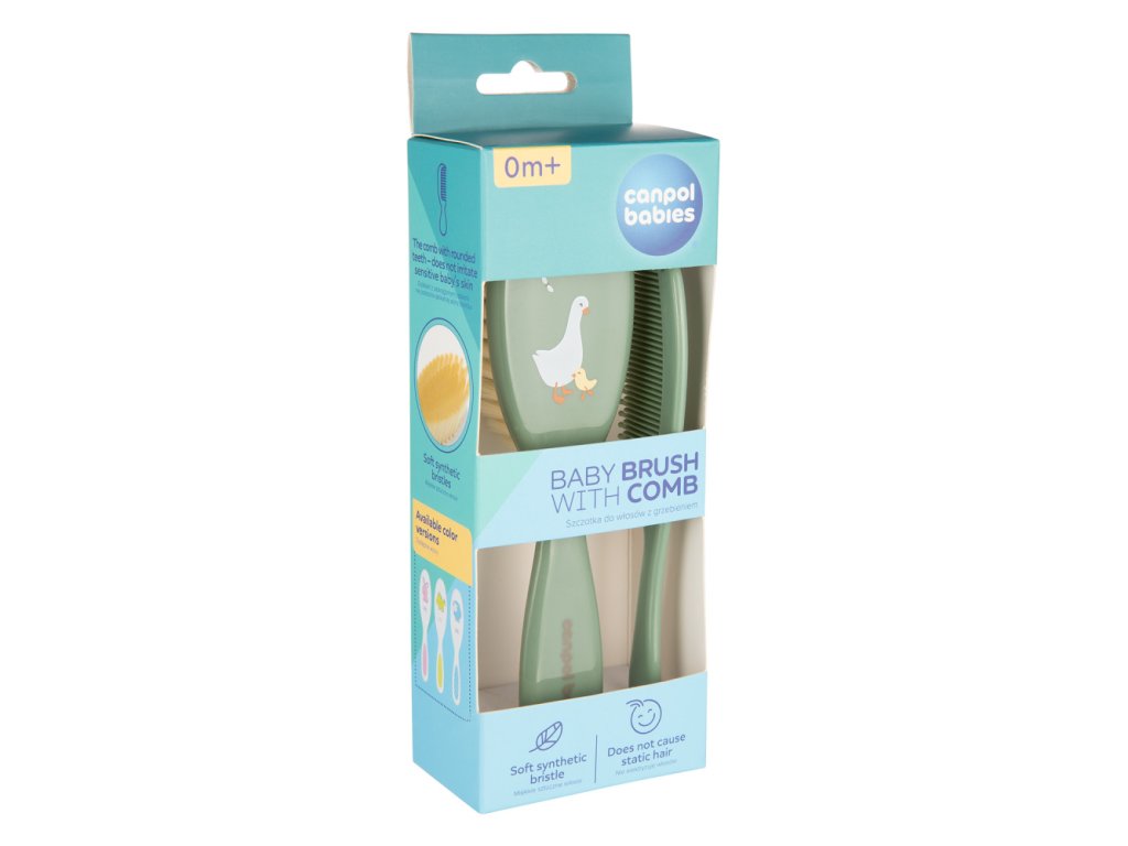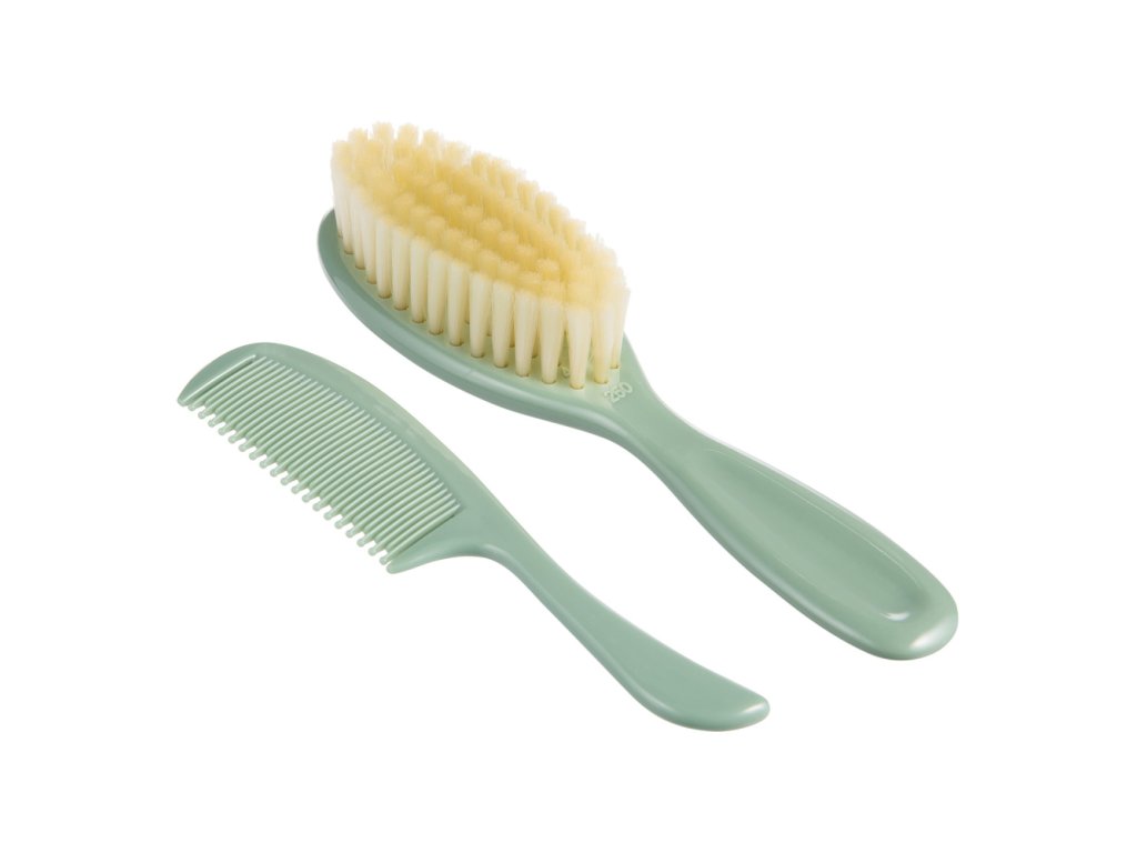 Sada pro péči o vlasy obsahuje hřeben se zakulacenými zoubky a kartáč s měkkým umělým vlasem. Kartáč jemně masíruje pokožku hlavy dítěte, podporuje její prokrvení a tak posiluje vlasy.
