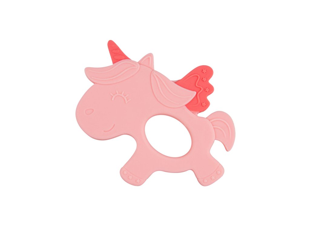Roztomilé silikonové kousátko ve tvaru jednorožce v pastelových trendy barvách je praktickým doplňkem pro nejmenší děti. Pomáhá tišit bolest dásní v období růstu zoubků. Nerovnoměrný povrch pomáhá masírovat svědivé dásně. Měkký a pružný, hygienicky nezávadný silikon, zmírňuje bolest dásní bez podráždění. Lehký a praktický tvar bez ostrých hran umožňuje dětem pohodlný úchop.