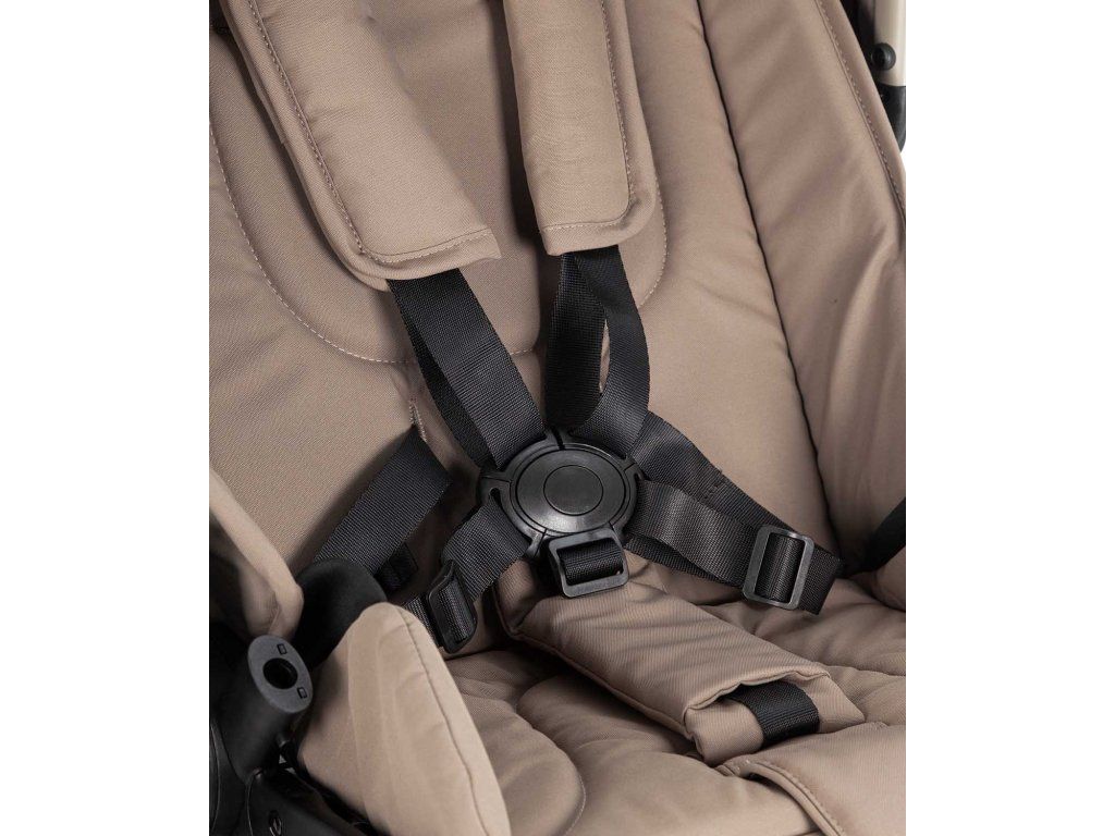 Modul kočárku je vybaven pětibodovými bezpečnostními pásy, odnímatelným otočným madlem a zarážkou proti uklouznutí.