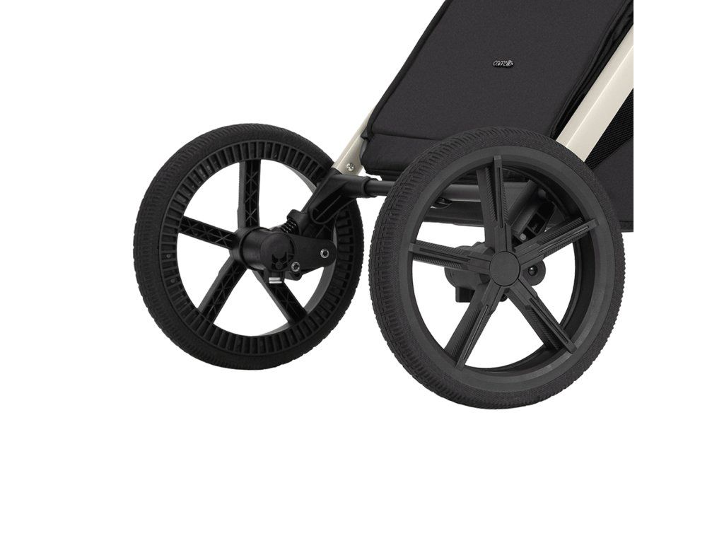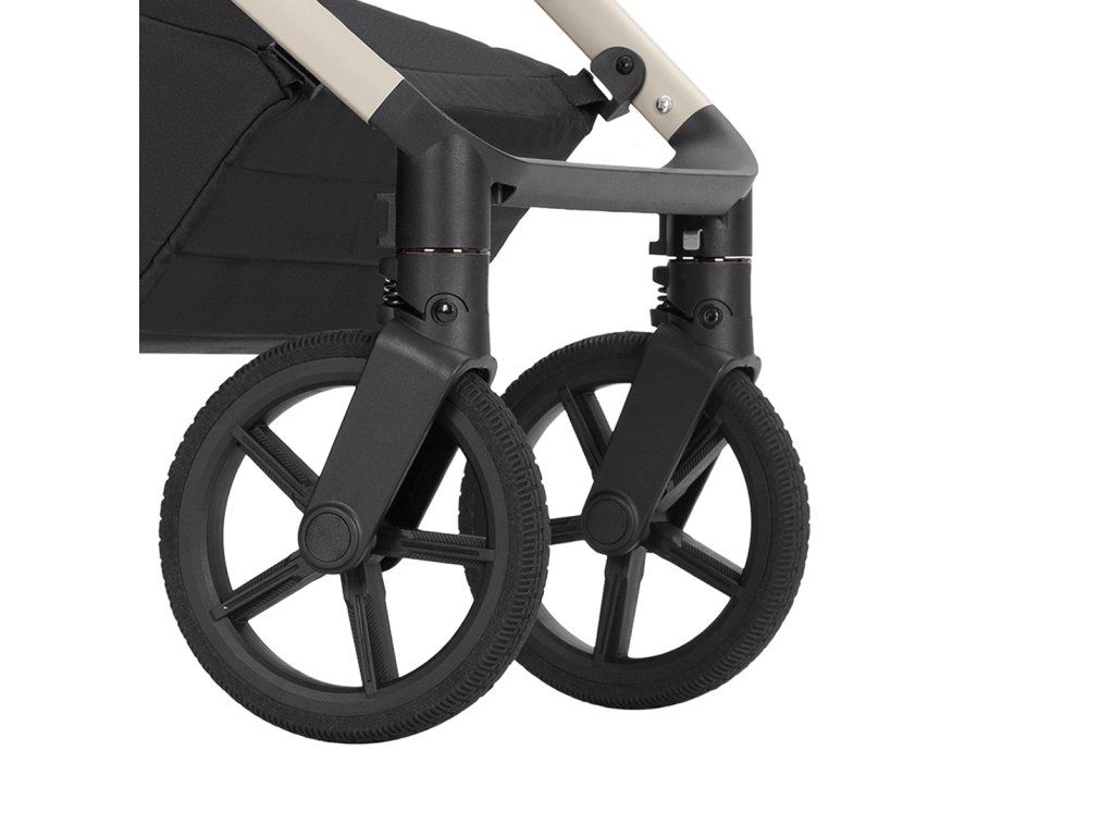 Kočárek Carrello Ultra je vybaven velkými koly vyrobenými z měkké gumy, která se skvěle osvědčují v terénu. Díky své konstrukci zajišťují skvělou přilnavost na různých površích a zároveň účinně tlumí nárazy, což zvyšuje komfort jízdy jak pro dítě, tak pro rodiče. Přední kola mají možnost blokování pro jízdu napřímo, což usnadňuje řízení v náročnějším terénu a zajišťuje stabilitu při procházkách.