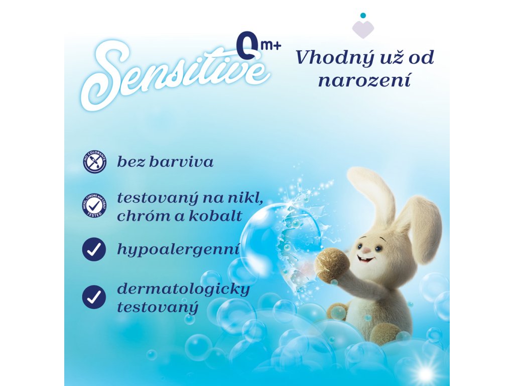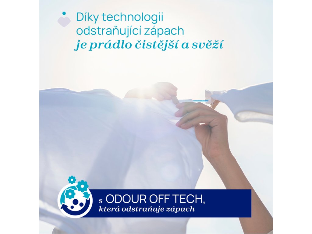 Hypoalergenní, neobsahuje barviva a je dermatologicky testováno na citlivé pokožce. Koncentrované složení s "zápach odstraňující" technologií, která zanechává oblečení čisté a jemně navoněné.