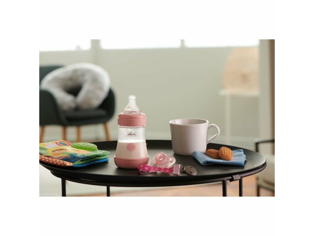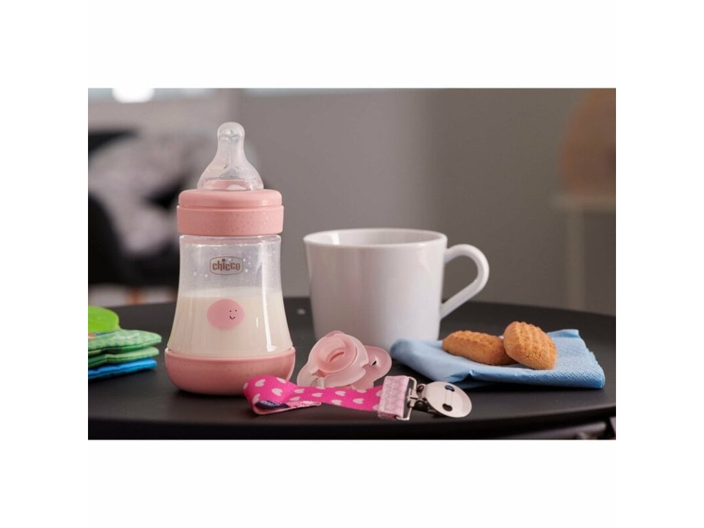 Chicco Perfect 5 je bio-funkční kojenecká láhev, která se přizpůsobuje potřebám vašeho dítěte díky intuitivnímu systému průtoku: inovativní systém byl navržen tak, aby podporoval a uměl se přizpůsobit fyziologickému sání každého dítěte a aby se během a po krmení cítilo spokojené a uvolněné. Na dně láhve je umístěna exkluzivní membrána Equilibrium, která reguluje průchod vzduchu a okamžitě se přizpůsobuje intenzitě a rytmu sání každého dítěte a poskytuje mu tak maximální komfort.