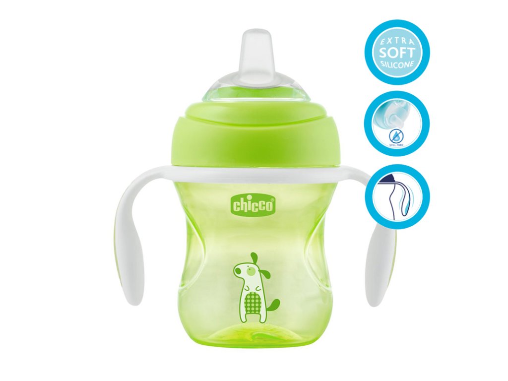 Hrníček Chicco Učíme se je ideální na postupný, pohodlný a jednoduchý přechod od kojení nebo pití z láhve k prvnímu hrníčku a samostatnému pití.