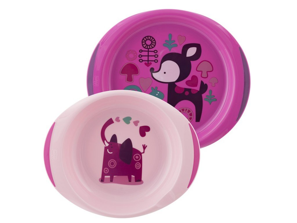 Chicco Set jídelní - talíř, miska růžový 12m+