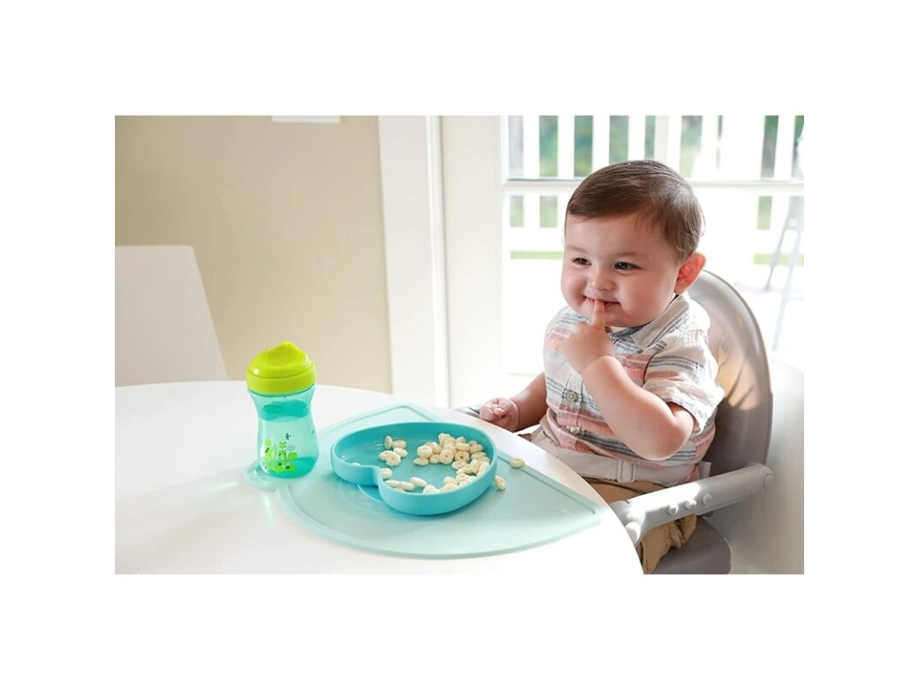 - Podstavec s přísavkou na spodní straně talíře ho udrží na místě i při prvních pokusech o samostatné jedení. To je velmi důležité při rozvoji dětské motoriky. Přesto je talířek lehký, flexibilní a přenosný i na jídlo mimo domov.