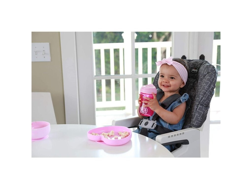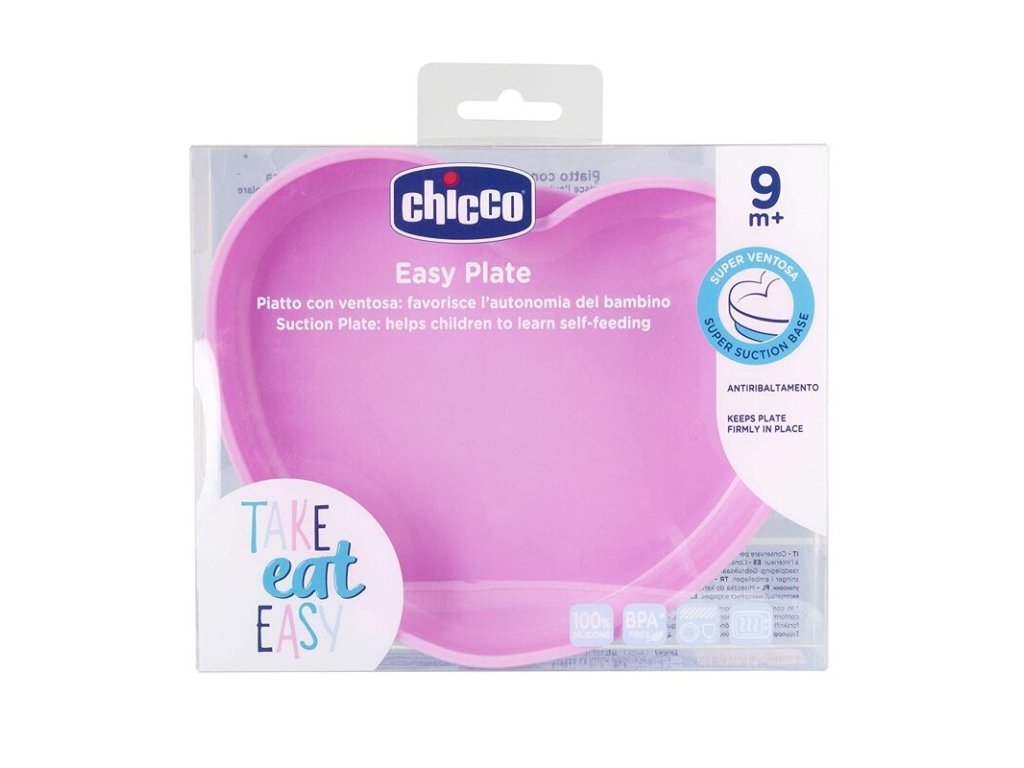 Silikonový talíř ve tvaru srdíčka z evoluční řady Chicco Take Eat Easy určené k dosažení samostatnosti při jedení je ideální pomocník pro dítě na cestě učení jíst bez pomoci druhých. Je vyroben ze 100% vysoce kvalitního potravinářského silikonu a zaručuje tak dlouhou životnost, maximální flexibilitu a snadno se čistí v myčce.