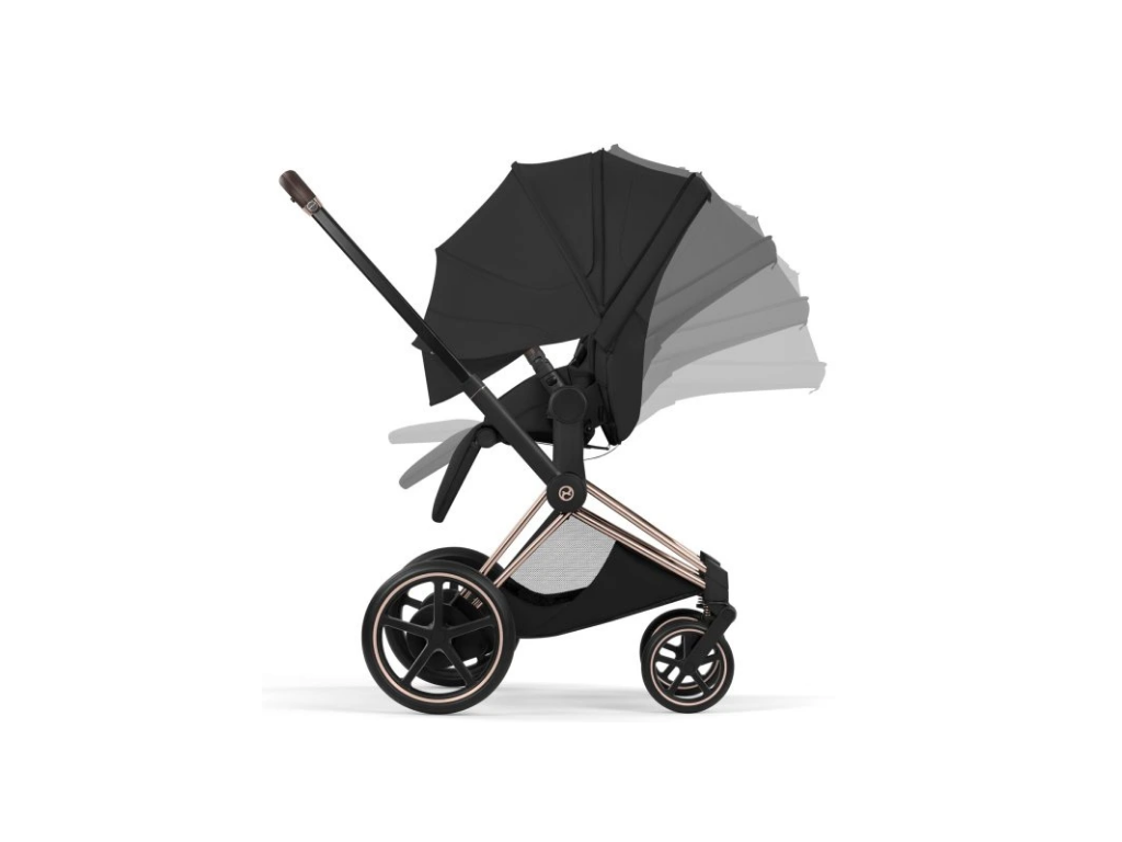 Set obsahuje: podvozek CYBEX e-Priam Matt Black Style Collection + sportovní sedačku CYBEX Priam Seat Pack Style Collection + hlubokou korbu CYBEX Priam Fold Lux Carry Cot Style Collection