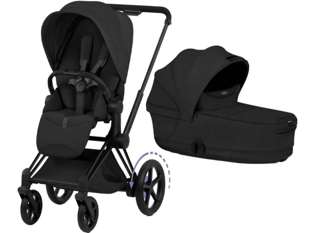 Set obsahuje: podvozek CYBEX e-Priam Matt Black Style Collection + sportovní sedačku CYBEX Priam Seat Pack Style Collection + hlubokou korbu CYBEX Priam Fold Lux Carry Cot Style Collection