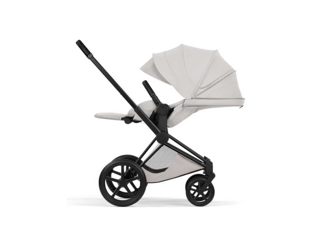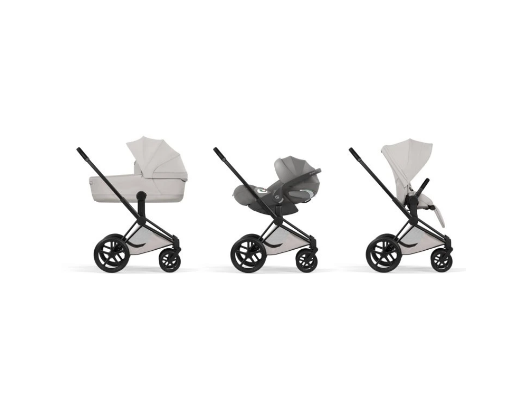 Set obsahuje: podvozek CYBEX Priam Matt Black Style Collection + sportovní sedačku CYBEX Priam Seat Pack Style Collection + hlubokou korbu CYBEX Priam Fold Lux Carry Cot Style Collection