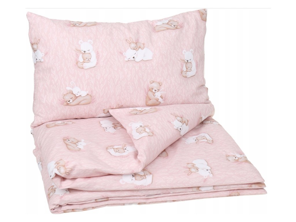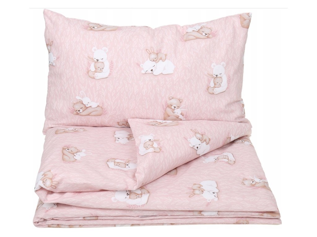 Danpol povlečení do postýlky 2.díl růžové - králíček s medvídkem