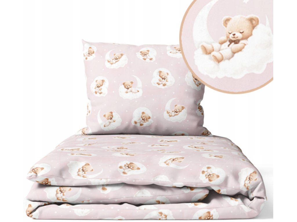 Danpol povlečení do postýlky 2.díl růžové - spící medvídek na obláčku