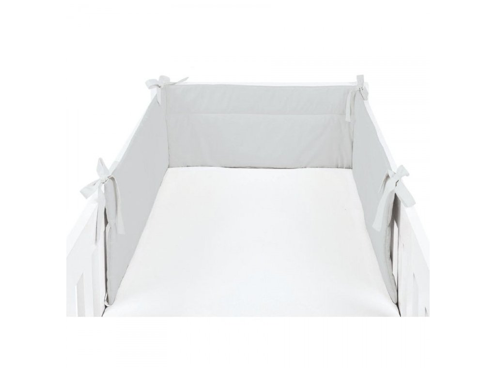Měkký bavlněný mantinel do postýlky o rozměru 360×30 cm v elegantní šedé barvě poskytne vašemu miminku bezpečí a pohodlí během spánku i hraní. Chrání dítě před nárazy do postranic postýlky, průvanem a zabraňuje prostrčení ručiček či nožiček mezi příčky.
