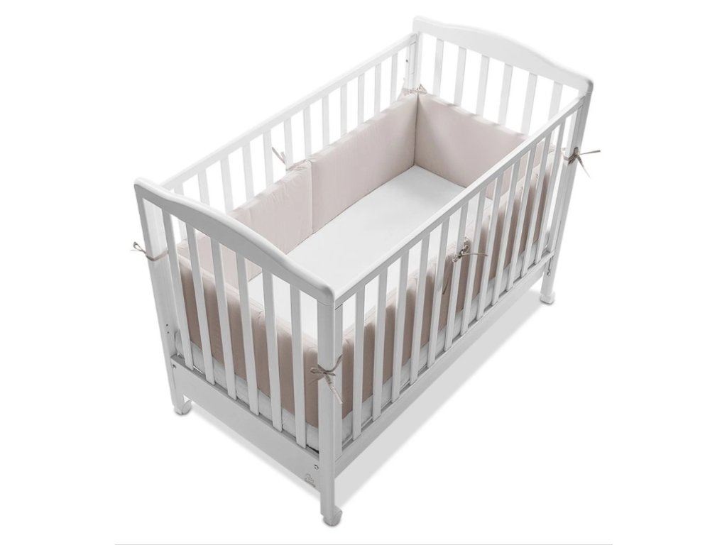 Hladký bílý ochranný mantinel je ušitý ze 100% bavlny. Výpln je 100% polyester.