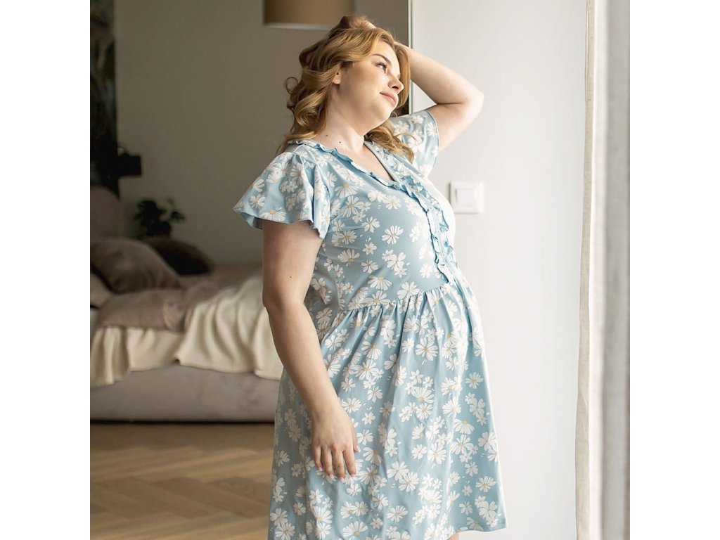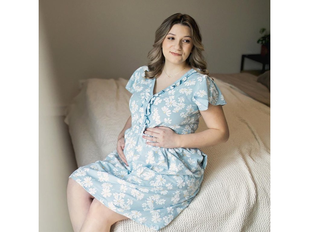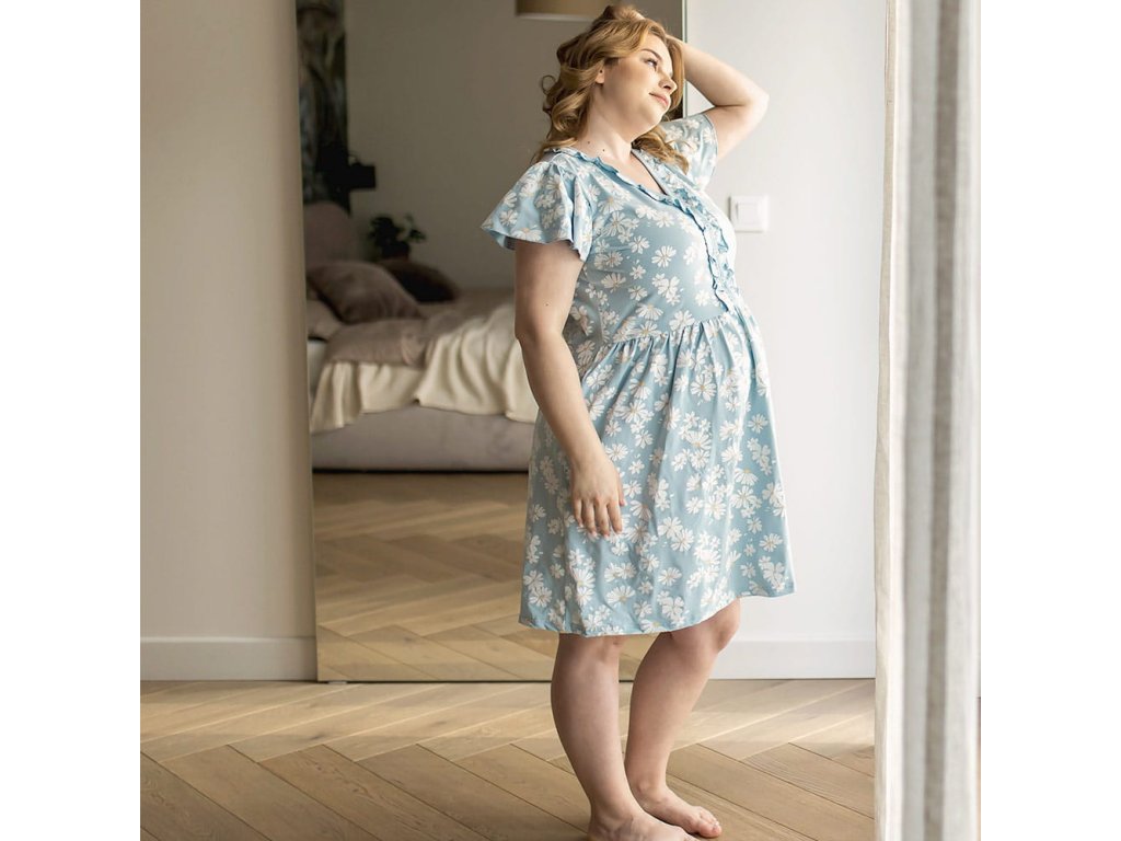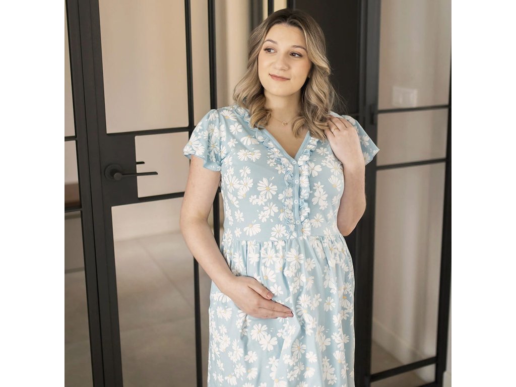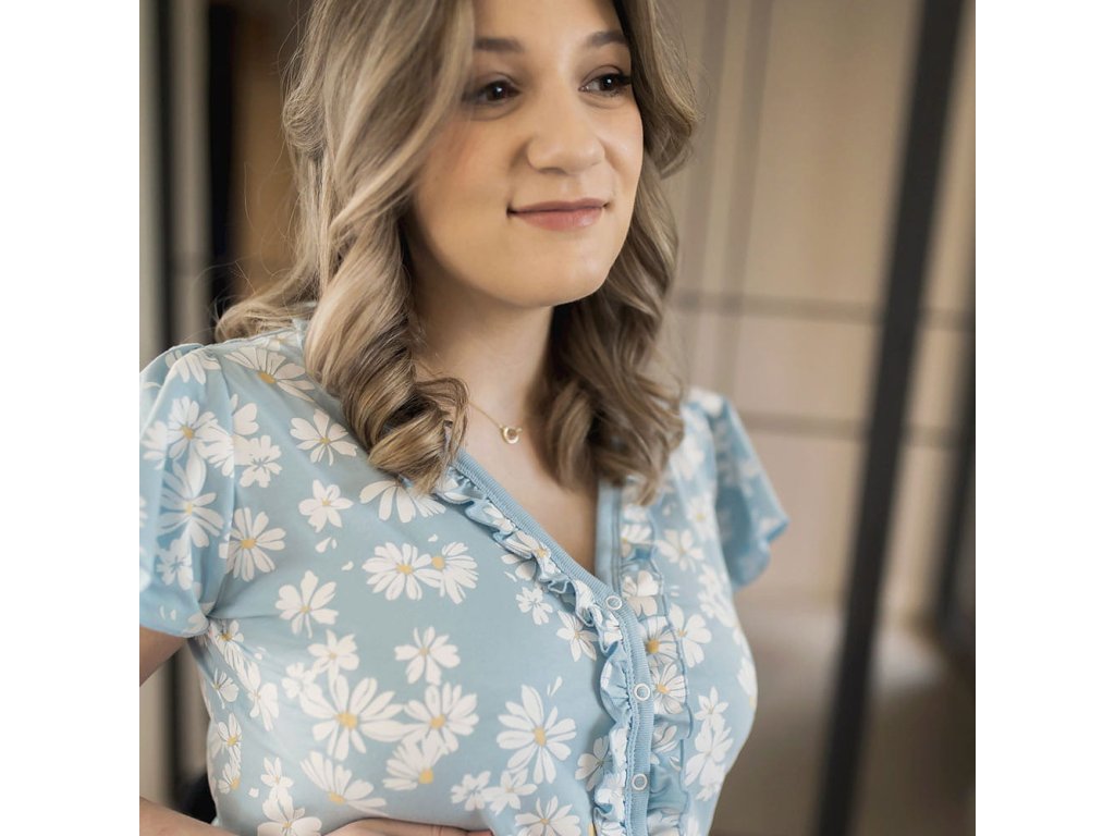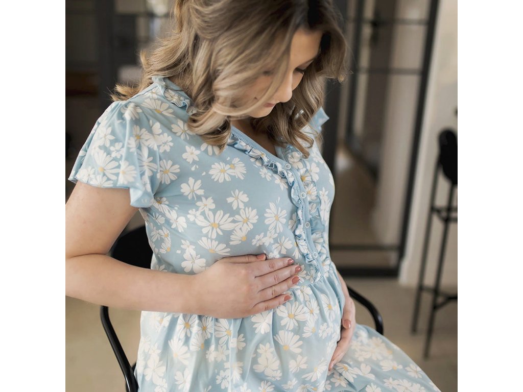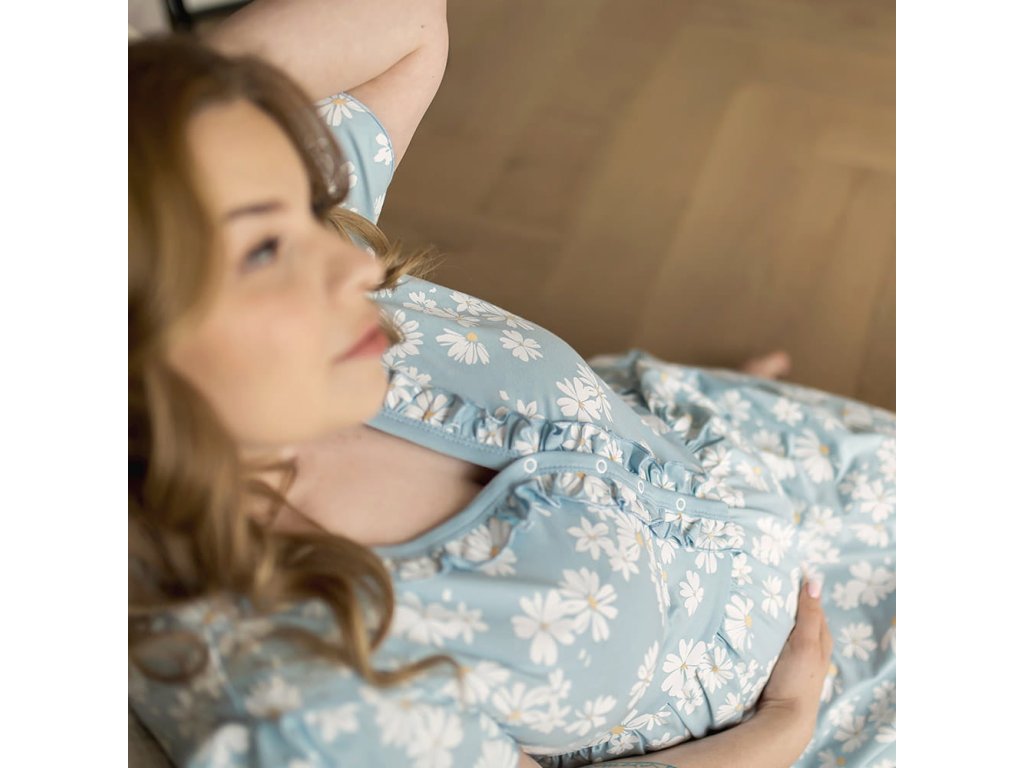 Eevi těhotenská noční košile Linda -světle modrá s kopretinami