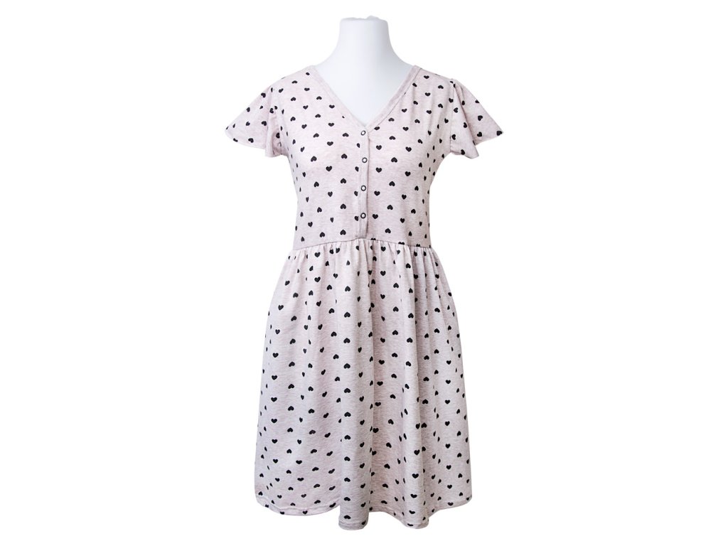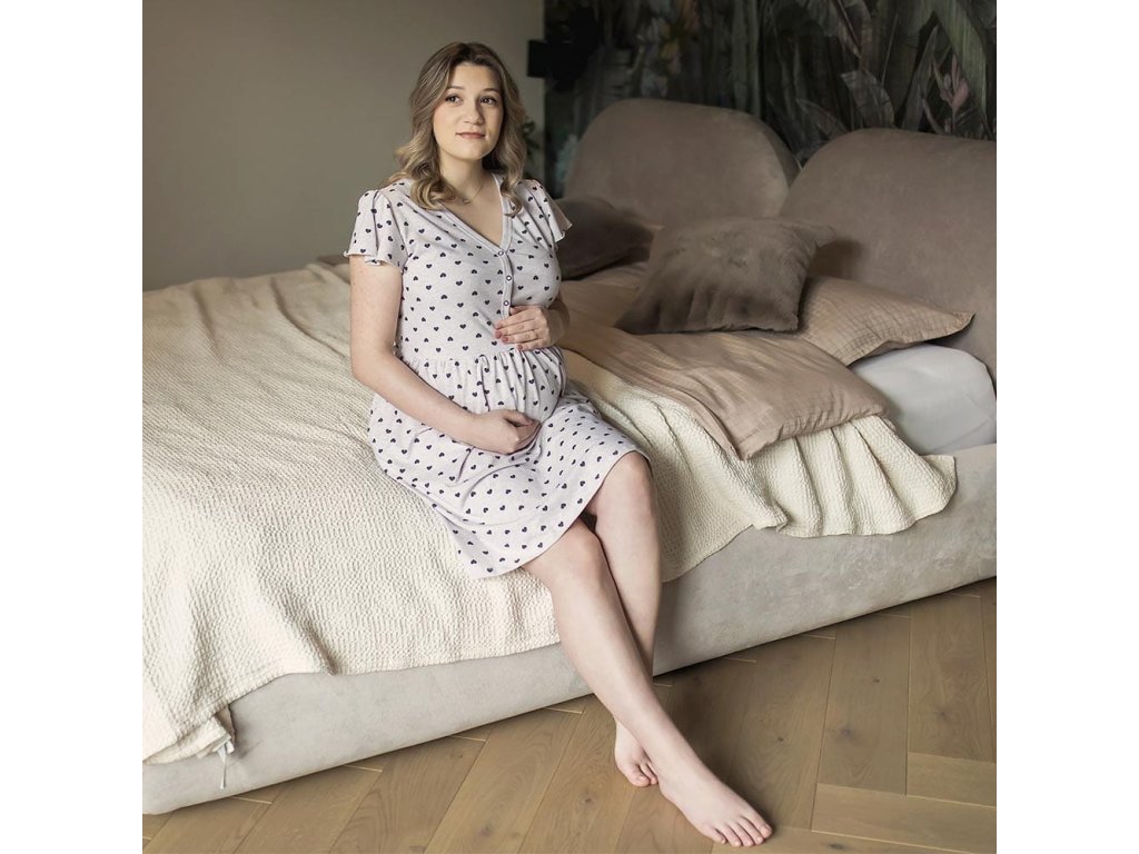 Eevi těhotenská noční košile Linda -světle šedá se srdíčky