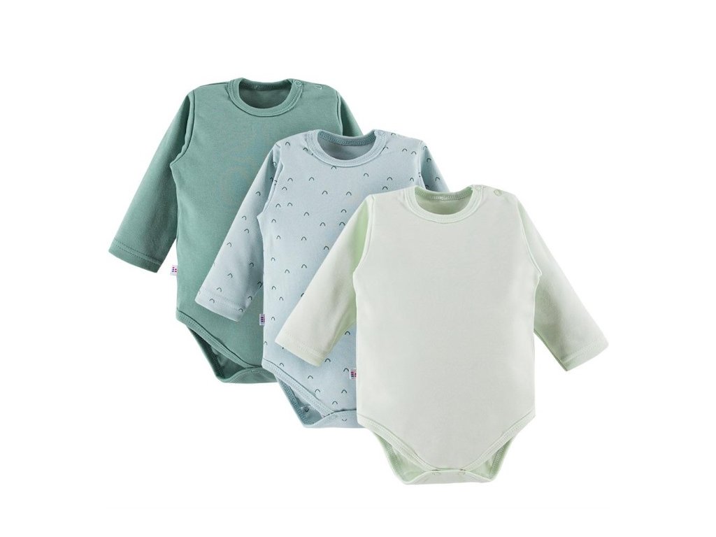 Celorozepínací kojenecké body s dlouhým rukávem z kolekce Tiny značky Eevi .Kojenecké body je v balení po 3 kusech. Body je perfektní pro první měsíce života miminka.
