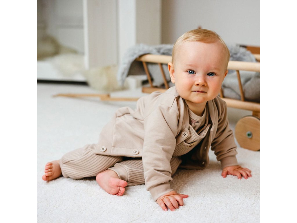 Stylové dětské zahradníky z měkkého pleteninového materiálu. Vyrobeny z jemné a pohodlné bavlněné směsi s elastanem. Nastavitelné ramínka na knoflíky umožňují přizpůsobení velikosti miminku. Skvělé na hraní i pro volný čas venku.