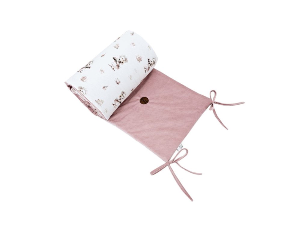 Chránič vyrobený z kombinace bavlny a luxusního sametu, v tlumených barvách, jako jsou pastelové, šedé nebo béžové, chrání dítě nejen před nárazy do tyčí postýlky, ale také dokonale zapadne do výzdoby každého dětského pokoje. je to elegance a útulnost.