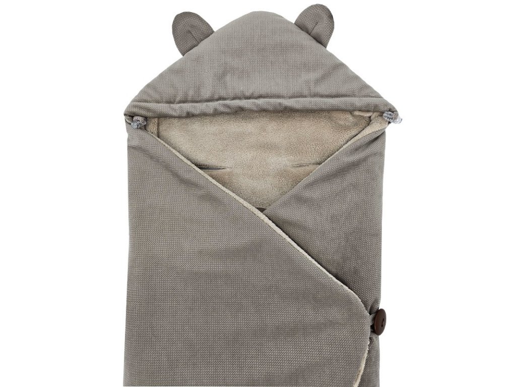 Tato deka je určena k použití v autosedačce nebo i samostatně. Speciální systém otvorů a upevnění umožňuje její připevnění k autosedačce, aniž by bylo nutné rozepínat pásy, a po připevnění a upevnění lze dítě zabalit.